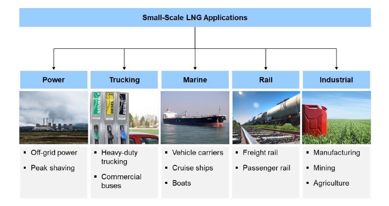 صنعت LNG در مقیاس کوچک به تولید، حمل و نقل و استفاده از LNG در حجمهای کوچکتر در مقایسه با واحدهای LNG در مقیاس بزرگ اشاره دارد. این صنعت، شامل استفاده از کارخانههای مایعسازی کوچک، حاملهای LNG در مقیاس کوچک و شبکههای توزیع محلی برای تأمین LNG کاربران نهایی مانند تأسیسات صنعتی دوردست، نیروگاههای کوچک، مناطق مسکونی دوردست و حمل و نقل دریایی و جادهای است. استفاده از LNG در مقیاس کوچک منجر به انعطافپذیری و کاهش هزینههای سرمایهگذاری میشود و دارای قابلیت ارائهی خدمات به بازارها و مکانهایی است که توسط زیرساختهای LNG در مقیاس بزرگ قابل دسترسی نمیباشند.